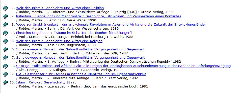 Bis heute stehen die Bücher von Martin Robbe in Universitätsbibliotheken in der Bundesrepublik (Ost und West).