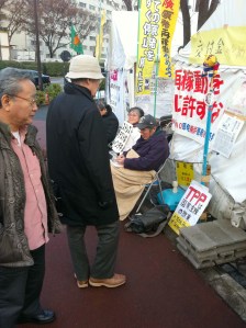 Seit September sitzen sie hier, 24 Stunden am Tag, 7 Tage die Woche. Ihr Protest richtet sich gegen das Wirtschaftsministerium gleich nebenan. Darin arbeiten unter anderem die staatliche Verwaltung der Atomindustrie und die staatliche Atomaufsicht, soweit man letztere tatsächlich so nennen kann. Denn ein Geflecht von Industrie und Politik hatte bisher jede wirklich Kontrolle der Betreiber japanischer Kernkraftwerke verhindert.