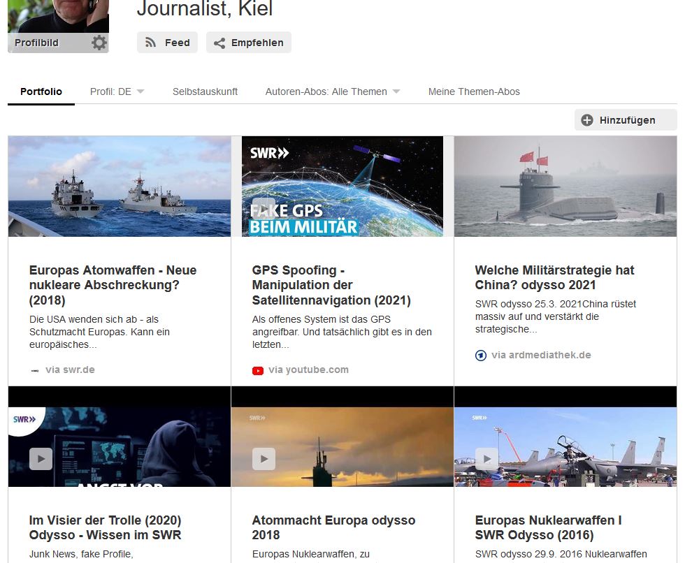 Viel Wissenschaftlich-nukleares (immer wieder zum DDR-KKW Greifswald), viel Militärisch-strategisches (2021 zu Chinas Militärstrategie), Ostasiatisches Leben, selbst Gelebtes und Gedrehtes in Japan und Korea:
